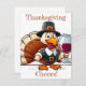 Det här är en Thanksgiving kalkon som höjer ett glas vin i en skål. Ett lustigt sött kort till användan som en inbjudan till ditt hem eller att skicka som en "tanke på dig vid Thanksgivingen" Kalkonen är i pilgrimskläderna med glas upphöjt.