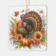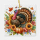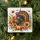 Lägg till en liten charm till höstens dekoration med den här runda keramiska prydnadsprodukten med en vattenfärgad boho-stil-kalkon. Den digitala grafiken visar en stolt Tom-kalkon omgiven av vibrant fall-blommor och pumpor som fångar värmen och stollig under Thanksgivingens säsong. Perfekt för att trimma träd eller accentuera en visning i säsong, ger denna ornament färg och personlighet till ditt hem. På motsatt sida finns ett anpassade hälsning, skapar det till en tänkbar keepsaké för familj, vänner eller värdar. . "AI-genererad teckning med designriktning av Susang6"