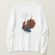 En lång vit dam-shirt med en ledsen-tittar kalkon, med en banderoll som säger: "Go Vegetarian this Thanksgiving" från en handmålad vattenfärgsdesign av Judy Adamson. Se även matchande hälsningskort.