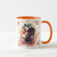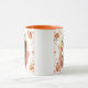 Thanksgiving kaffe eller te mugg med Turkiet, önsketben och höst löv gräns.