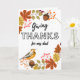 Ge tack, Thanksgivingens hälsningskort för ett far, pappa. Anpassningsbar på kortets framsida så att du kan ändra texten på den tredje raden. Anpassa insida som du vill. Fall-höstens cirkelformade utformning med en mängd löv, akroner, bär och en fågel. Art, bild och versell copyright © Shoaff Ballanger Studios, 2022.