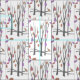 Söt vinterstrukturerad väv med träd med Snö vit bakgrund, grått brunt träd och rosa, lila och orange löv. Perfekt för syprojekt för thanksgiving och gåvor för vinter och höst/fall. Ursprunglig design av Sarah Trett.