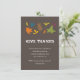 Ge tackinbjudan med Höst löv - löv av grönt, löv av gult, lämna av läsk, lila lämna, lämna och orange löv - och anpassningsbar text "Ge tack". De färgstarka löven trycks på en brun bakgrund färg.