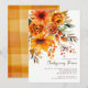 Den här inbjudan till Thanksgiving innehåller en vacker bukett av färgstark orange blommor och skapar den perfekt för en festlig helgdag. Inbjudan är enkel och elegant, med vit bakgrund och svart text. Blomblomsterbuketten tillför en liten bit stollig och roligt, och den övergripande designen är perfekten för att fira Thanksgivingens helgdag med dina kära.