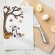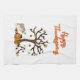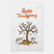 Underbar för att dekorera för nedgånghelgdagar. Handduken har happy thanksgiving med två siberian husky med ett träd och fallande löv.