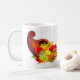 Kaffemugg som visas med ett festligt tryck för thanksgivingskördymnighetshorn.