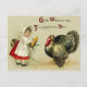 Denna förtjusande vintagethanksgivingvykort, vid Ellen Clapsaddle, presenterar en ung flicka som erbjuder en cob av maj till en stor kalkon. Meddelandet på kortet är: Bra önskemål för thanksgivingdag.