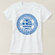 Thassos, Grekland kvinnors t-shirt med Grelands nationalflagga inuti en urgrekisk mönstercirkel symbol. Njut av att bära denna t-shirt medan du är på semester på den vackra ön Thassos eller ge den som en souvenirpresent.
