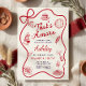 Host a memorable Italian-themed celebration with this editable "That's Amore" bridal shower invitation template, featuring charming hand-drawn pizza and pasta illustrations in a rustic red whimsical hand-drawn style.
