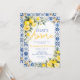 The back of the invitation continues the blue tile and watercolor lemon floral design, creating a cohesive and polished stationery set. Easily personalize with your event details to create a memorable and beautifully styled bridal shower invitation.