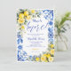 The back of the invitation continues the blue tile and watercolor lemon floral design, creating a cohesive and polished stationery set. Easily personalize with your event details to create a memorable and beautifully styled bridal shower invitation.
