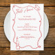 Förhöj din bröllopsfest, bröllopsmottagning eller italienskinspirerad middag med denna That's Amore-meny, med en handritad vinflaska och prydnadsdetaljer i en romantisk röd stil. Perfekt för medelhavsbröllop, toskanska middagsfester eller rustika vingårdsmottagningar. Anpassningsbar menytext gör den idealisk för alla evenemang som serverar en italiensk festmåltid!