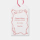 Ge din övningsmiddag en romantisk, italiensk touch med That's Amore Favor Tags! Designade med en vintage handritad ram, elegant röd typografi och en charmig vinflasksillustration, ger dessa anpassningsbara etiketter den perfekta avslutande detaljen till dina presenter. Oavsett om du binder dem på vinflaskor, olivolja eller godispåsar, ger dessa etiketter la dolce vita till din speciella fest. Perfekt för vintunadsmiddagar, rustika italienska bröllop eller medelhavsinspirerade evenemang, kan du anpassa med era namn, datum och plats för en genomtänkt och stilfull souvenir.