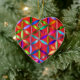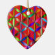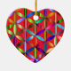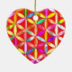 The Flower of Life symbol, is on the front and on the back of a heart-shaped ceramic Valentine tree ornament.