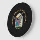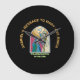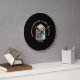 This design features a stained-glass-style illustration of The Annunciation, where the Angel Gabriel delivers his message to the Virgin Mary, with the Holy Spirit symbolized by a dove above them. The illustration is crowned by the curved text "GABRIEL'S MESSAGE TO MARY: AVE MARIA" and the title "THE ANNUNCIATION OF THE LORD" at the bottom, all set against a contrasting black background.