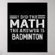 The Answer Is Badminton Funny Math Teacher Student Poster