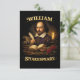 A classical painted portrait of William Shakespeare writing by candlelight, surrounded by books, parchment, and roses in a rich Renaissance setting.