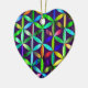 The Flower of Life symbol, is on the front and on the back of a heart-shaped ceramic Valentine tree ornament.