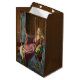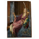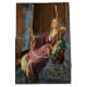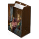 This design features a painting by the British Pre-Raphaelite artist John Collier (1850–1934). It depicts an elegant young woman seated in an interior space that conveys both comfort and quiet luxury. She leans slightly back, her posture relaxed yet slightly provocative, suggesting a degree of playful self-awareness. One of her arms rests casually against her own shoulder, while the other holds a small mirror, hinting at themes of vanity and reflection. Her gaze is directed either at herself or just beyond, leaving her exact thoughts ambiguous and inviting the viewer to speculate on her intentions. The woman is dressed in a flowing gown of soft, warm tones, with a sash tied at her waist, which enhances the graceful contours of her figure. Her long, wavy hair cascades loosely around her shoulders, adding a romantic, Pre-Raphaelite softness to her appearance. Light falls gently on her face and upper body, illuminating her features and drawing attention to the subtle expression that balances innocence with flirtation. The warm, intimate atmosphere, combined with the careful rendering of fabrics and textures, creates a scene that is both aesthetically pleasing and psychologically intriguing. The Minx belongs to the genre of “problem pictures”, in which Collier and other Victorian painters deliberately left narrative elements ambiguous to provoke thought and moral reflection. The woman’s expression and gesture suggest multiple readings: she could be admiring her own beauty, scheming, or subtly asserting her charm and independence. The title, The Minx, reinforces this sense of playful mischief or flirtation, reflecting late-Victorian fascination with femininity, desire and the power of self-awareness.
