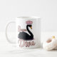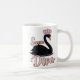 The black swan, queen of the water. The swan is adorned with a delicate pink crown that underlines its regal appearance and adds a touch of sophistication. The water in which the swan sits is represented by a subtle ripple effect that conveys movement and vibrancy without disrupting the serene elegance of the motif. The lettering "Swan Diva" is designed in a decorative, playful font that harmoniously complements the overall image.