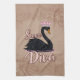 The black swan, queen of the water. The swan is adorned with a delicate pink crown that underlines its regal appearance and adds a touch of sophistication. The water in which the swan sits is represented by a subtle ripple effect that conveys movement and vibrancy without disrupting the serene elegance of the motif. The lettering "Swan Diva" is designed in a decorative, playful font that harmoniously complements the overall image.