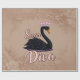 The black swan, queen of the water. The swan is adorned with a delicate pink crown that underlines its regal appearance and adds a touch of sophistication. The water in which the swan sits is represented by a subtle ripple effect that conveys movement and vibrancy without disrupting the serene elegance of the motif. The lettering "Swan Diva" is designed in a decorative, playful font that harmoniously complements the overall image.