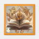 Den här fängslande designen har ett öppet bok, strålande värme med sina gyllene accenter. Den ljusa texturerade bakgrunden förstärker dess inbjudande karaktär och symboliserar det gränslösa äventyr och den kunskap som finns i historierna. Perfekt för att inspirera läsare att dyka upp i nya världar och anamma uppfinningsrikedomen. "Ursprunglig bild genererades av Meta AI. AI skapade teckningar. Licensierad enligt CC BY-SA 4.0.