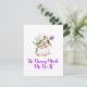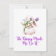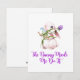 The Bunny Made Me Do It med en kanin som håller blommor på ett påskkort.