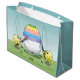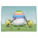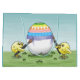 The two cute yellow chickens paint a beautiful Easter egg for the egg hunt.