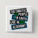 This design features bold, layered text with the phrase "The Coolest People on Earth Live in Altamont" in a striking cool color palette. A globe graphic, integrated with coordinating blue and green blocks, symbolizes the city's global appeal. The design is suitable for showcasing local pride, as it boldly declares Altamont's unique charm as a popular city in the southern California area. Colorful eye-catching visuals serve to foster a sense of community and identity among residents.