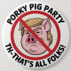 This design delivers sharp satire with a nostalgic twist: a cartoon pig face sits behind a red prohibition symbol, surrounded by curved captions reading “PORKY PIG PARTY” and “Th-th-th-that’s all folks!” It's a visual rallying cry against entrenched single-party dominance in politics. The piece calls for an end to political monopoly and advocates for a system where multiple voices and diverse viewpoints are not just allowed—but empowered. Through humor and vintage familiarity, it turns protest into punchline, inviting audiences to imagine a future beyond stale, one-sided rule.