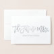 Ett roligt och kreativt sätt att låta alla veta att du är förlovad. Denna design har frasen "the future Mrs." med ett litet hjärta i slutet, skriven i ett modernt skrivstil i äkta folie. Insidan är tom så att du kan lägga till ditt eget meddelande.