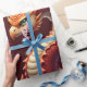 The golden serpent dragon. The dragon's body is covered with intricately crafted scales that shimmer in a harmonious interplay of red, gold, and cream tones, lending the creature a vibrant texture. The dragon's head is reminiscent of an eagle: powerful, majestic, and with a pointed beak symbolizing power and wisdom. The piercing eyes are an intense blue-green.