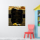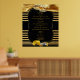 En lyxig skimrande guld silkesstruktur virad runt två vigselringar på en dramatisk svart bakgrund med en Deco-stil rand för att ge designen en chic och glamourös look för att anpassa menyn affisch
