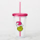 This fantastic, bold illustration is a close-up portrait of the Grinch in full mischievous mode! He has his signature sly grin and bright yellow eyes, but his look is updated with a large, fluffy Santa hat in a fun, unexpected pink/fuchsia color instead of the traditional red. This graphic is perfect for anyone who loves the holidays but embraces a non-traditional, delightfully grumpy, and colorful style!