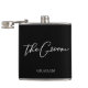 Denna snygga, enkla faderskapsflaska har brudgummens namn under minimalistisk vit typografi på svart. Anpassa denna eleganta, moderna bröllopsgåva för ditt bröllop eller svensexa.