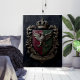 Bring the grandeur of medieval art into your home with this châteaucore gallery wall art print. Shield divided per pale in deep burgundy and forest green, a stylized raven as the central charge, supported by two oak branches, a crown above, a banner below reading "In Umbra Floresco" makes this art piece perfect for dark academic, gothic, and medieval-aesthetic interiors — this piece create an atmospheric wall that feels centuries in the making