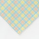 The image shows a two-sided fabric swatch. The front features a subtle pastel plaid pattern, while the back is plain white, conveying a calm, neutral tone.