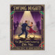 • This elegant digital illustration features a couple dancing under a spotlight, highlighting an Art Deco-style vintage postcard for a 1940s swing night event.