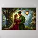On a quiet afternoon in Sherwood forest, romance fills the air. Decorations have been made and tucked among the green, and the beautiful winter roses add their fragrance to the bush. Candles hang from tree branches, their low lights glowing like shimmering fairy spirits. In this secluded grove of Love, Robin Hood and Lady Marian celebrate Valentine's Day. As they hold each other close, their eyes lock and they feel the warmth in their hearts that their Love will last forever, for it is woven in truth, respect, understanding, forgiveness, and presence, an undying flame. And so they kiss for the first or maybe thousandth time, an eternal kiss of legend to endure through the centuries in the hearts of all kind, good meaning lovers everywhere... This artwork was created with Google Flow and further altered by me.