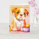 The design of this card is that of a very cute baby Bulldog who is a pondering thoughts about loyalty and friendship as he/ she is about to eat. The portrait is almost in a cute cartoon with a touch of vintage added to the scene.