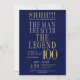 His life has been a great adventure! This fabulous navy blue men's 100th birthday surprise party invitation that says "The Man The Myth The Legend" in a classic font in silver and gold would be perfect for asking people to join you as you celebrate the man in your life's 100th birthday. This invitation is trendy, stylish, modern and contemporary. To see your unique invitations select "Personalize this template" and type in your information. It's super easy!