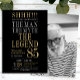 His life has been a great adventure! This fabulous black men's 85th birthday surprise party invitation that says "The Man The Myth The Legend" in a classic font in silver and gold would be perfect for asking people to join you as you celebrate the man in your life's 85th birthday. This invitation is trendy, stylish, modern and contemporary. The photo on the back makes it just that much more special. To see your unique invitations select "Personalize this template" and type in your information and upload a favorite photo. It's super easy!
