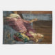 This design features a painting by the British Pre-Raphaelite artist John Collier (1850–1934). It depicts an elegant young woman seated in an interior space that conveys both comfort and quiet luxury. She leans slightly back, her posture relaxed yet slightly provocative, suggesting a degree of playful self-awareness. One of her arms rests casually against her own shoulder, while the other holds a small mirror, hinting at themes of vanity and reflection. Her gaze is directed either at herself or just beyond, leaving her exact thoughts ambiguous and inviting the viewer to speculate on her intentions. The woman is dressed in a flowing gown of soft, warm tones, with a sash tied at her waist, which enhances the graceful contours of her figure. Her long, wavy hair cascades loosely around her shoulders, adding a romantic, Pre-Raphaelite softness to her appearance. Light falls gently on her face and upper body, illuminating her features and drawing attention to the subtle expression that balances innocence with flirtation. The warm, intimate atmosphere, combined with the careful rendering of fabrics and textures, creates a scene that is both aesthetically pleasing and psychologically intriguing. The Minx belongs to the genre of “problem pictures”, in which Collier and other Victorian painters deliberately left narrative elements ambiguous to provoke thought and moral reflection. The woman’s expression and gesture suggest multiple readings: she could be admiring her own beauty, scheming, or subtly asserting her charm and independence. The title, The Minx, reinforces this sense of playful mischief or flirtation, reflecting late-Victorian fascination with femininity, desire and the power of self-awareness.