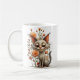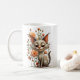The mischievous cat Melodie and the floral splendor. A cute cartoon cat with large, expressive ears. The cat wears a mischievous smile and is framed by long, elegant whiskers. Delicate peach-colored flowers bloom around it, giving the image a playful and lively touch. The background is a muted beige with floral patterns, emphasizing the dreamy atmosphere of the artwork. The soft, slightly blurred effect lends the image a gentle, almost dreamy mood, making it an enchanting eye-catcher full of charm and whimsy.