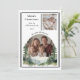 Celebrate a year of joy, growth, and new beginnings with this elegant two-photo Christmas card featuring an evergreen forest design. The front showcases a modern collage layout with a small rectangular photo at the top and a curved “the more the merrier” caption framing a circular photo below. An evergreen forest illustration flows across the bottom, adding warmth and natural charm to the design.