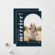 Ett roligt typografiskt högtidligt graviditetskort med ert favoritfoto i en båge och "the more the merrier! " i vit font på en marinblå bakgrund. Ni kan lägga till ett valfritt meddelande på baksidan.