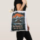 Shows a cozy cabin in the forest with mountain ranges in the background. The caption "The Mountains Are My Home" appears in bold, rustic script underneath, creating a welcoming, vintage atmosphere.