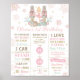 Celebrate your little ballerina’s first year with this Nutcracker–themed 1st birthday milestone birth stats foam board, featuring elegant pastel hues of pink, gold, and mint. Adorned with charming illustrations of Nutcrackers, a ballerina, gifts, snowflakes, and holiday accents, this design beautifully captures the magic of a winter wonderland celebration.