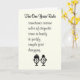 Ett roligt kort för att gratulera på ett sent bröllop/äktenskap, med en dålig dikt och illustration som använder ett arcane-etikett-försvar för att vara sen.